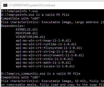 PEInfo is a program for a detailed analysis of the 32-bit EXE, DLL, OCX, BPL files and other produced according to Portable Executable File Format specification.