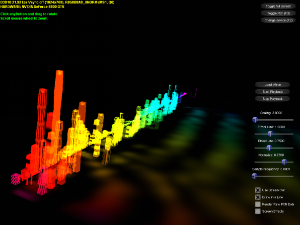 偶然发现 D3D10 对频谱可视化支持的很好。惊讶。