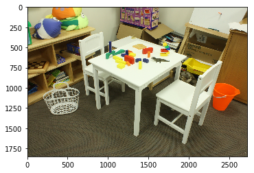 Color photograph and disparity map from the Middlebury dataset. 来自 Middlebury 数据集 的 彩色图片 和 disparity map。