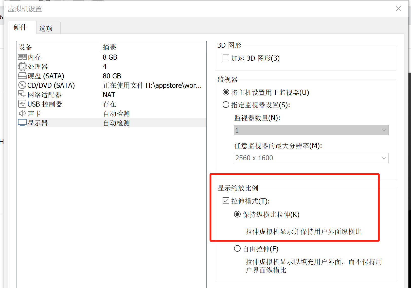 5、VMware Tools 的安装可以让虚拟机分辨率自适应,文件和剪贴板也可以直接与母鸡共享,属于使用必装,但安装后需要重新设置分辨率,否则画面会一直处于一个比较大的状态,影响体验,同时会有卡顿。 VMware Tools 的安装教程:https://www.dhzy.fun/archives/4366.html 依旧是在系统偏好设置→显示器→缩放,分辨率选择带有 (HiDPI) 的选项,然后勾选好,画面中的窗口会放大或者缩小。