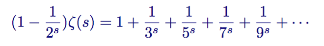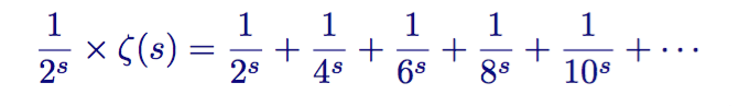 <img src="https://pic1.zhimg.com/v2-762dcfafc1c964923e4a20d2ef8e9c48_b.jpg" data-caption="" data-size="normal" data-rawwidth="523" data-rawheight="97" class="origin_image zh-lightbox-thumb" width="523" data-original="https://pic1.zhimg.com/v2-762dcfafc1c964923e4a20d2ef8e9c48_r.jpg"/> zeta 函数 首先,他将等式两边同时乘以第二项: