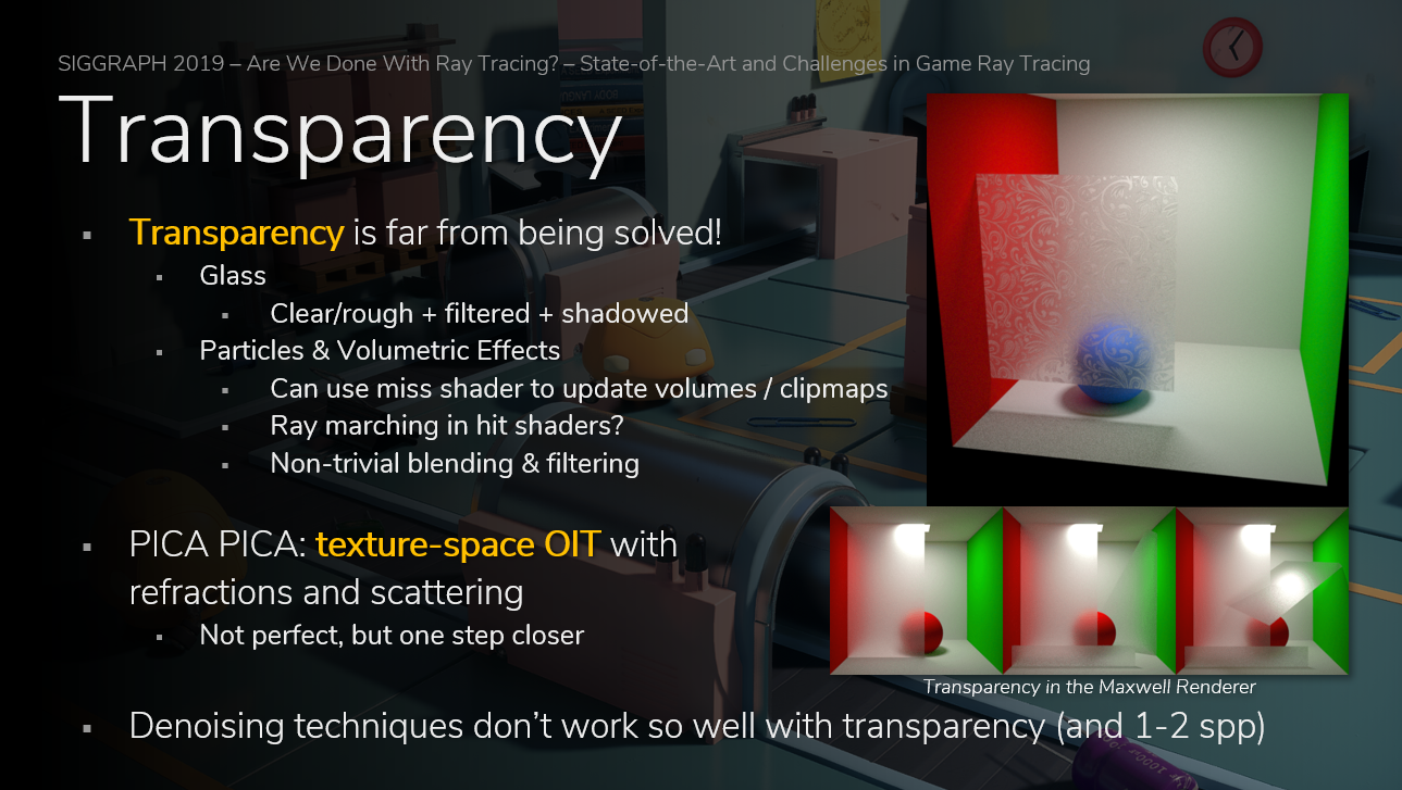PICA PICA Demo中,虽然采用了具有折射和散射的纹理空间OIT(texture-space OIT)技术,但也并不完美,有改进的空间。