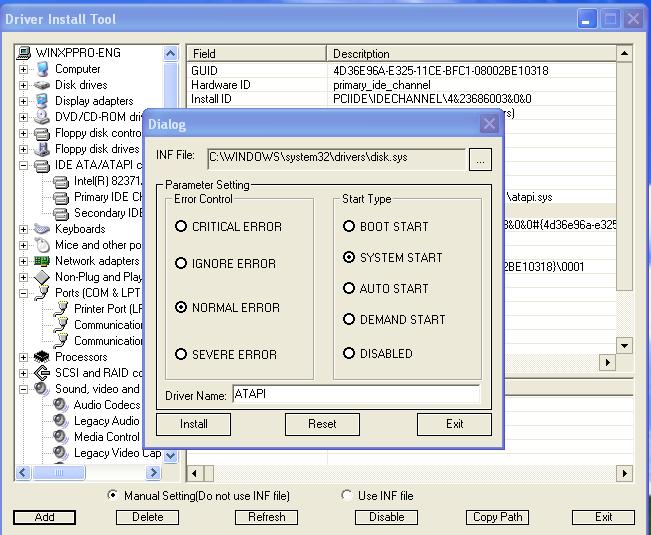 Windows also allows loading drivers at runtime using the SetupDiXXX API. The first we need to call SetuiDiGetINFClass to get the class of a specified device INF file.