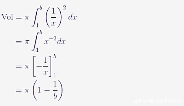 随着 $b$ 越来越大,答案中的最终分数也越来越小,因此体积为有限量 $π$,用数学符号表示为: