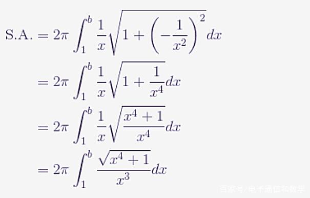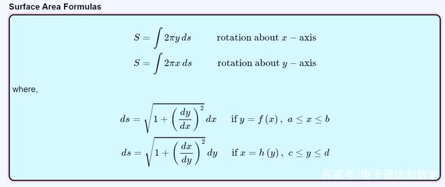 接下来,让我们考虑喇叭的表面积,旋转体的表面积计算公式为: