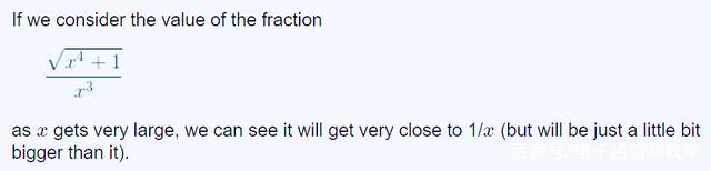 如果我们考虑分数的值,当 $x$ 变得非常大时,我们可以看到它会非常接近 $1/x$(但会比它大一点)