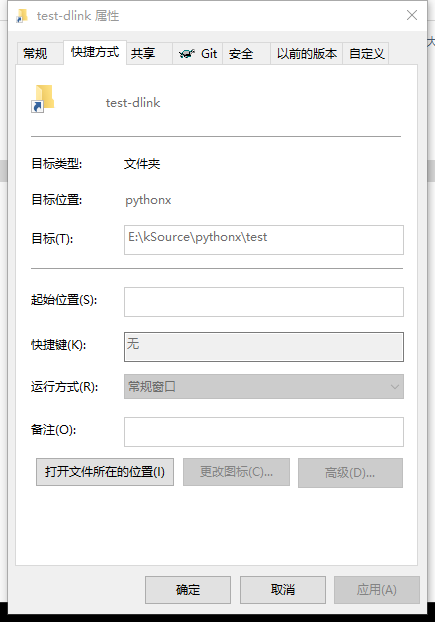 为 D:\test-dlink <<===>> E:\kSource\pythonx\test 创建的符号链接