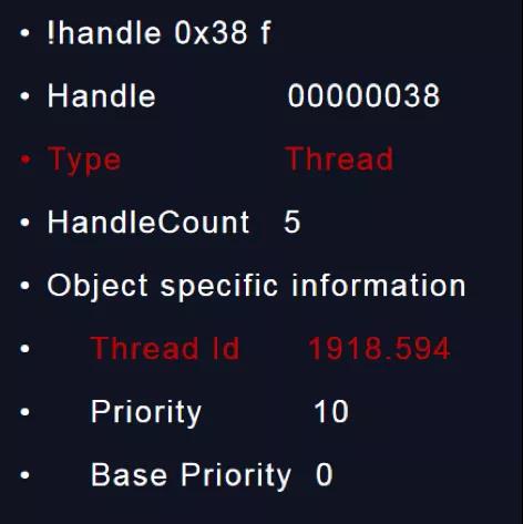 句柄为:0000011c。查看句柄:!handle 0x0000011c f 。