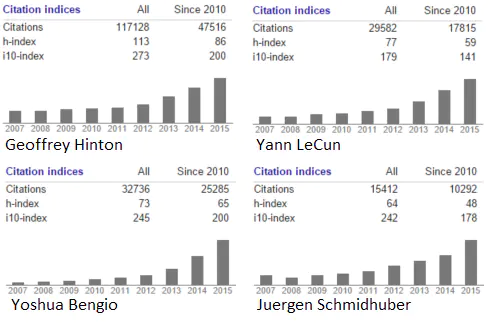 试问机器学习领域的任何一人,是什么让神经网络研究进行下来,对方很可能提及这几个名字中的一个或全部:Geoffrey Hinton,加拿大同事 Yoshua Bengio 以及脸书和纽约大学的 Yann LeCun。
