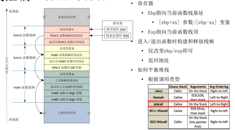 调用约定 (Calling Conventions) (__cdecl、__stdcall、__fastcall) C++ 函数名修饰 (Name Mangling)。