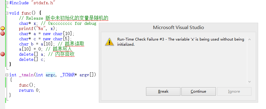 - VisualStudio Debug 版本 /GZ 可以帮助捕获内存错误。
