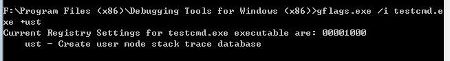 gflags.exe /i xxx.exe +ust , 开启用户层栈记录 :