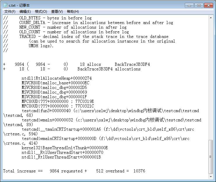 分析增加栈:umdh -d C:\a.txt C:\b.txt >> C:\c.txt