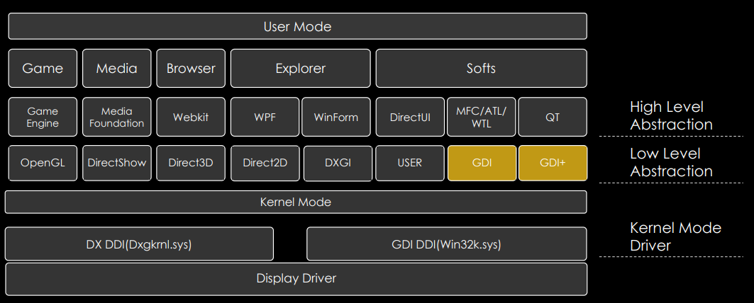 GDI+ is an API that is exposed through a set of C++ classes. programmers of new applications should use GDI+ for all their graphics needs because GDI+ optimizes many of the capabilities of GDI and also provides additional features.
