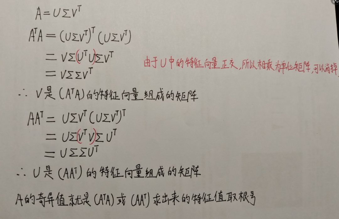 还是按照特征值求解的思路,现在的矩阵 A 不是方阵,如果将其乘以自己的转置矩阵就变成了方阵, 是方阵就可以求其特征值和特征向量。