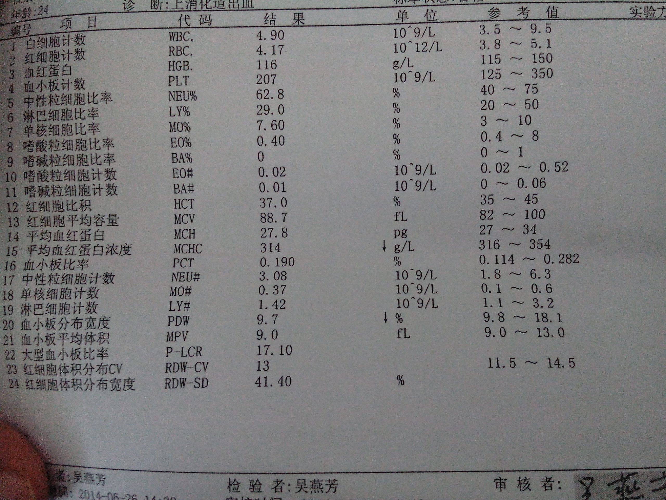 淋巴细胞数量 & LYG# & (1.42 \times 10^9/L)