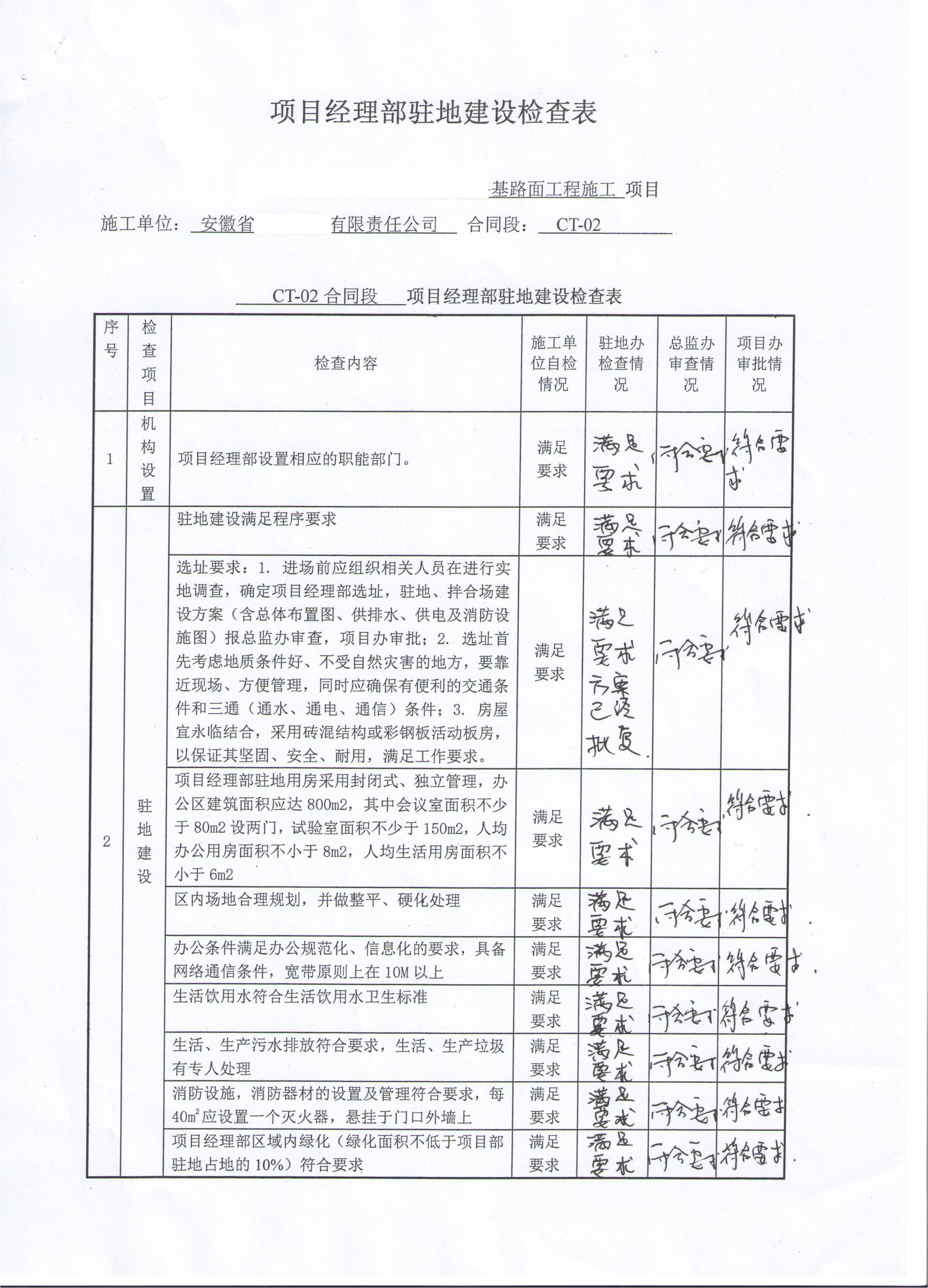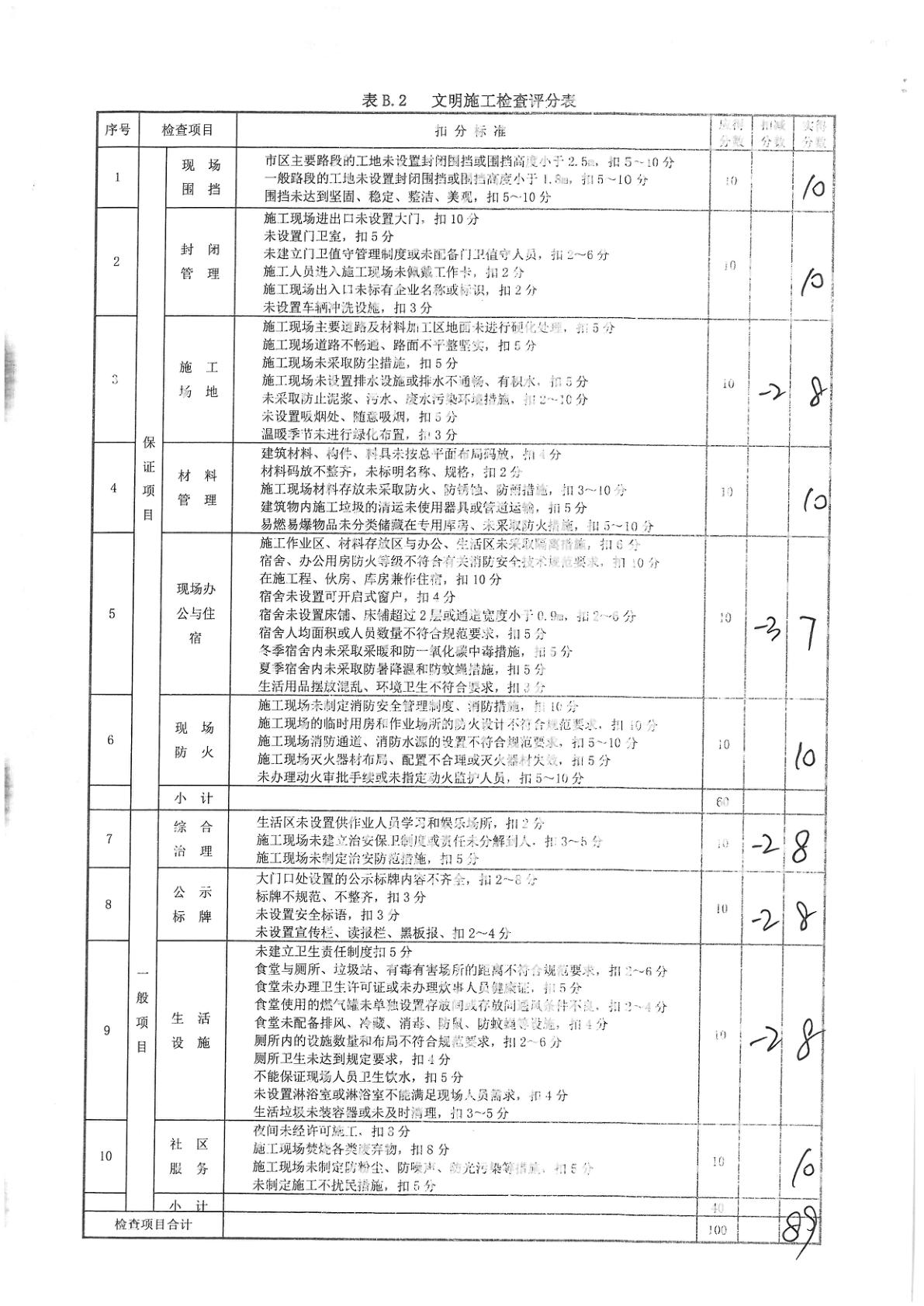 | 5 | 按市标化工地检查表开展自评工怍 | 次数 __ 平均得分 __ |