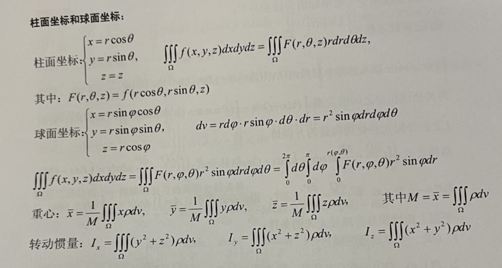 [ V_{ 圆柱 }=πr^{2}h ] [V_{ 圆锥 }=\frac{1}{3}πr^{2}h ] [V_{ 圆台 }=\frac{1}{3}π(h(r^{2}+ rr'^{2} + r'^{2})) ]