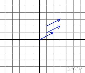 可以用一个箭头来"绘制"二维向量,箭头的长度就是向量的模,箭头的方向就是向量的方向。这个向量你随意放在坐标系的任何地方,只有长度和方向不变,那就是同一个向量,且易证只要长度方向不变,其坐标表达式就不变。比如图中的蓝色箭头都是同一个向量