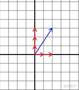 如果上面这段描述读起来有点懵逼,我们在几何上来看线性变换。如图,对于蓝色的向量 ,它是由2个