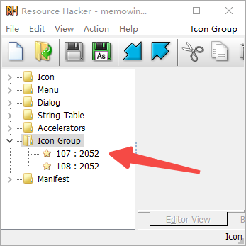 先要用 resourcehacker 看好要替换图标的 mask 是多少,比如:ICONGROUP,107,2052 。